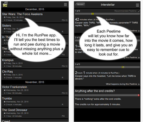 Con esta aplicación sabrás cual es el momento exacto para poder ir al baño durante una película en el cine, sin perderte nada interesante y te enviará un pequeño resumen de la parte que te perdiste. Disponible para iOS, Android y Windows phone.