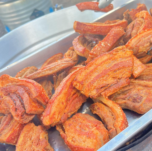 Eater destaca a "La esquina del sabor", una venta de chicharrones teñidos con gaseosa naranja vertida en la manteca de cerdo.