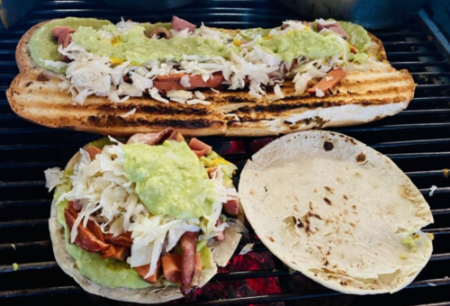 Se venden en paquetes de libra, e incluye tortillas de maíz, guacamol, cebollitas y picante.