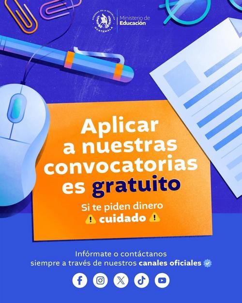 El Ministerio de Educación (Mineduc) ha informado a través de sus redes sociales que todos los programas que ofrece son completamente gratuitos. Si eres maestro y te han solicitado dinero para postularte, puedes denunciarlo llamando al 1503 o de manera presencial en la planta central y en las Direcciones Departamentales de Educación de tu localidad.