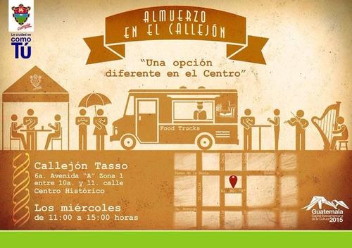 Desde mayo pasado, un grupo de Food Trucks, apoyados por la Municipalidad de Guatemala se estacionan en el Callejón de Tasso, sexta avenida “A”, entre 10 y 11 calle de la zona 1. Ahí, las personas se encuentran para disfrutar de platillos como pastas, comida china, hamburguesas, tortas mexicanas, entre otros gustos culinarios.