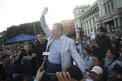 El festejo se realizó en la Plaza Central, en la zona 1 de la Ciudad de Guatemala, a donde decenas de personas acudieron para festejar que Arévalo y Herrera hayan logrado el segundo lugar en las votaciones.