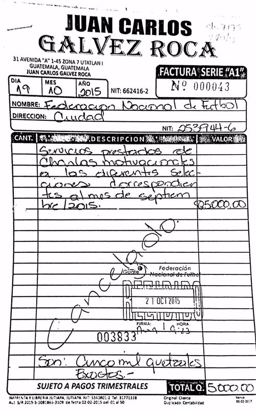 Y de la misma manera que cobra 15 mil quetzales como asesor del Comité Olímpico Guatemalteco, en la Fedefut aparecen pagos a Juan Carlos Gálvez, comentarista en Radio Nacional TGW, quien brindaba charlas motivacionales a las Selecciones Nacionales de Fútbol, ya que debido a que padece limitaciones visuales, se convirtió en motivador de deportistas y a la vez es periodista.