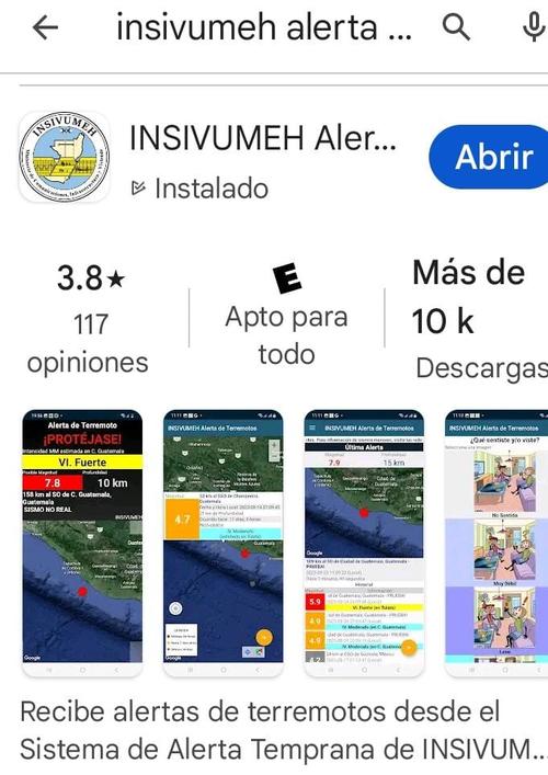 - Paso 2: buscar la aplicación con el nombre de "INSIVUMEH ALERTA de Terremotos".