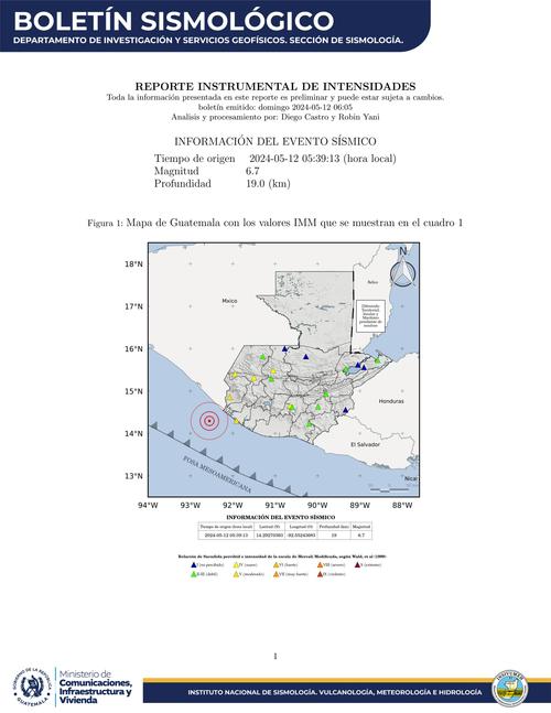 12 de mayo de 2024. 05:41 hrs.#SomosINSIVUMEH #GuatemalaSaleAdelante #MICIVI #TemblorGT #SismoGT pic.twitter.com/Sf2cvhjKYr
