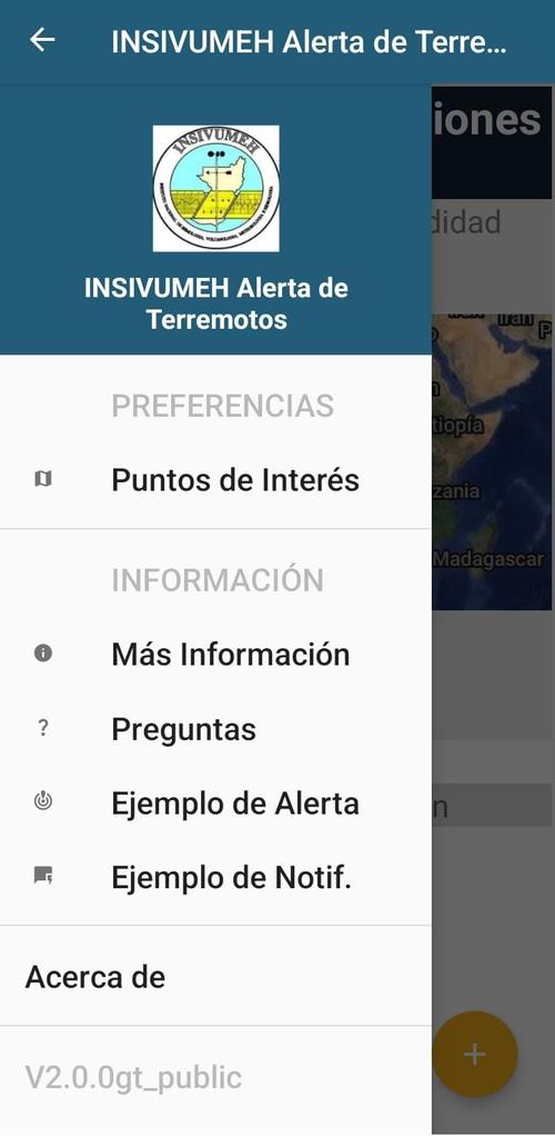 El Insivumeh explicó que dependiendo a la magnitud del temblor, la aplicación activa una voz con un mensaje que puede variar entre las siguientes frases "agáchate, protéjase y espera", también brinda la escala del sismo y los grados preliminares del mismo.