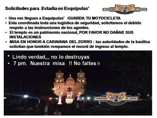 A un día de la peregrinación de motoristas de la Caravana del Zorro, los preparativos en Esquipulas ya están en la fase final. Además de buscar la marca de la peregrinación más concurrida, también se quiere que la misa del sábado sea la que congregue a más fieles en la basílica.