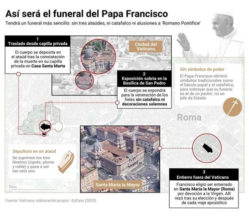 La ceremonia fúnebre se celebrará el viernes 25 de abril, en la Plaza de San Pedro, como lo estipula la normativa, que establece su realización entre el cuarto y sexto día tras la muerte. Estará presidida por el cardenal Giovanni Battista Re, decano del Colegio Cardenalicio.