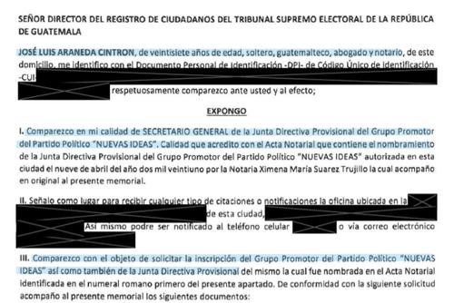No es la primera vez que se habla de Araneda Cintrón y que se le relaciona con la política. En octubre de 2021, su nombre resonó en los medios de comunicación de Guatemala y El Salvador, luego que elfaro publicara un reportaje que lo vinculó con la creación de un nuevo partido político que lo conectaría con el presidente salvadoreño, Nayib Bukele.