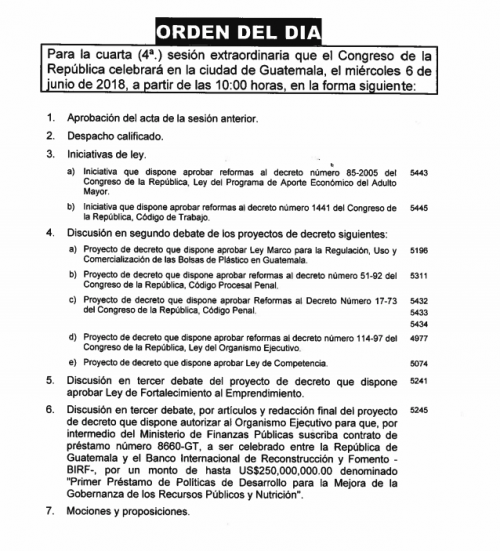 A pocas horas que una fuerte erupción del volcán de Fuego provocara caos y una gran tragedia humana, los diputados en el Congreso se disponen a aprobar varias leyes polémicas, como la liberación del transfuguismo y la de aceptación de cargos, a través de la cual los sindicados que acepten su culpa, podrán reducir sus penas.