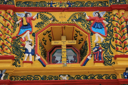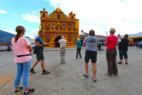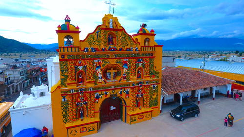 Uno de los sitios más emblemáticos en el occidente de Guatemala es la iglesia católica del municipio de San Andrés Xecul, debido a sus colores que se mezclan con el sincretismo maya y las imágenes religiosas en su fachada, la cual representa el colorido y el diseño del huipil local.