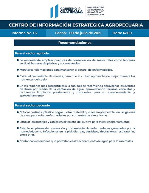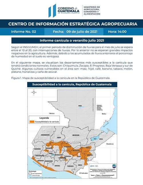El MAGA informó que los departamentos más susceptibles a la canícula tendrán condiciones normales. Los cuales son: Chiquimula, Zacapa, Baja Verapaz, El Progreso y el sur de El Quiché.
