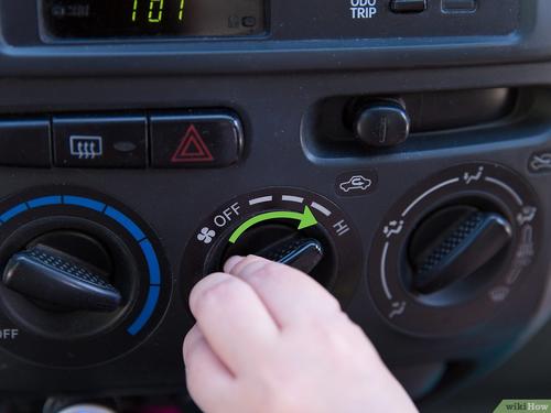 Enciende el auto, y coloca el aire acondicionado y el ventilador a la máxima potencia. De esta manera, el aire circulará y la solución de limpieza se esparcirá alrededor del sistema. Al principio, debes mantener el ajuste al máximo para que el sistema se ponga en marcha.