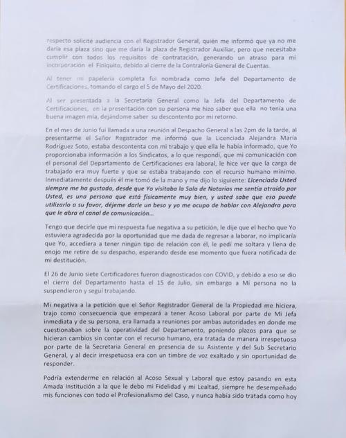 Dos mujeres que trabajan en el Registro General de la Propiedad (RGP) denunciaron que fueron acosadas por el registrador general Luis Alfredo Pineda Loarca.