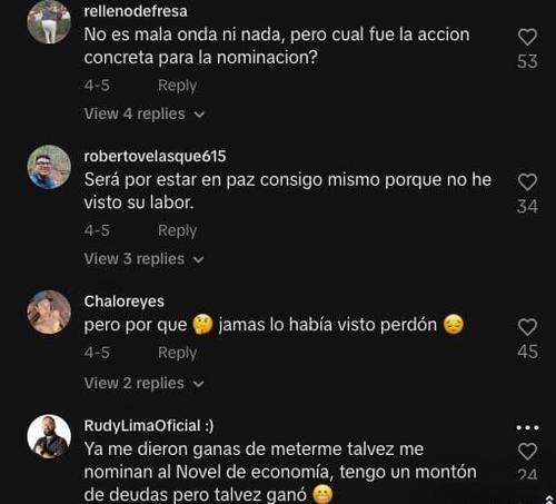 Por medio de su cuenta de TikTok, el exparlamentario publicó un video en el cual muestra un documento, que, según dijo, es la constancia de que fue nominado para recibir la distinción.