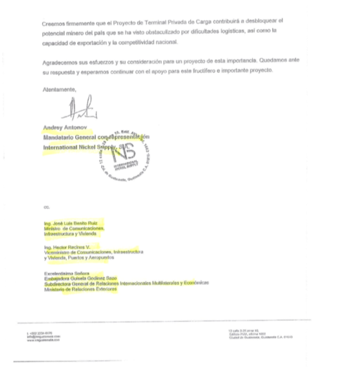 El emisor fue el mismo Andrey Antonov, quien había enviado las anteriores comunicaciones, y se identifica como director general de Mayaníquel, S.A.
