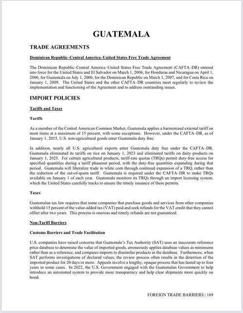 Luego de que EE.UU. formulara el Informe de Estimación Nacional de Comercio 2025, y mostrara las barreras arancelarias encontradas por cada país, en el caso de Guatemala, se pide resolver "engorrosos" trámites, propiedad intelectual, participación en licitaciones, contrabando, entre otros.