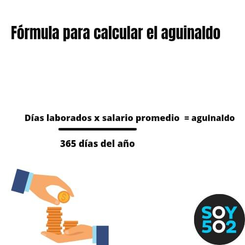 Fórmula de aguinaldo = Q4,500 (sueldo ordinario) ÷ 365 (días del año) x 275 (días laborados)