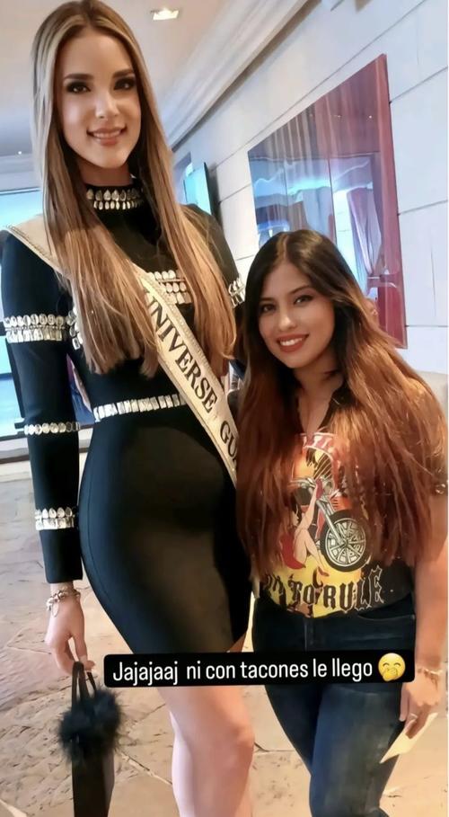 "Jajaja ni con tacones le llego", escribió la seguidora de Miss Guatemala Universo junto a la fotografía que se tomó con ella.
