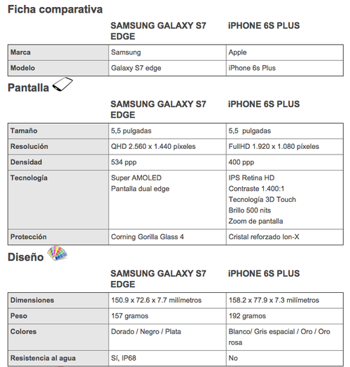 Además estas son las características técnicas con las que cuentan cada dispositivo: