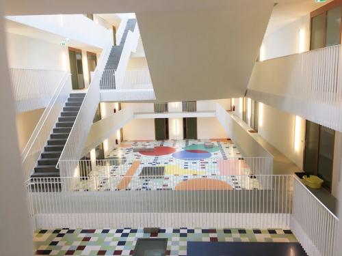 El edificio se encuentra en Hirschstettner Straße (Lugar de los Venados) en Viena, de ahí el nombre de la creación de Pérez, y fue hecho por una famosa firma de arquitectos llamada Dietrich Untertrifaller Architekten.