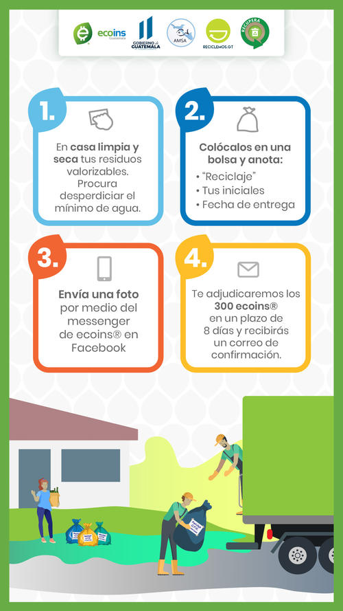 Si quieres añadirte al proyecto y formar parte del reciclaje (empresa, colegio, institución), puedes enviar un correo a: infoguatemala@ecoins.eco