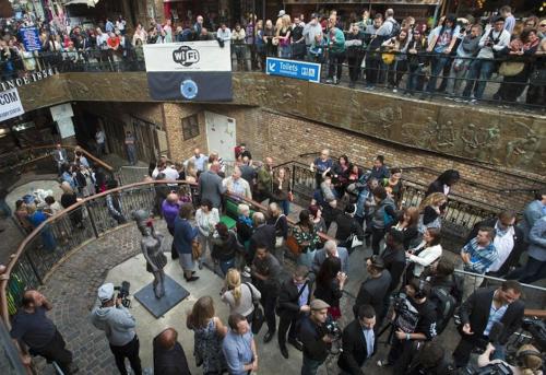 La primera ubicación de la figura sería Roundhouse, lugar donde se ofrecen conciertos, pero se decidió este lugar, para que los fanáticos tuviesen libre acceso a ella.