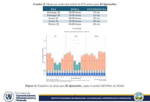 Además, se especifica que en la primera de esas playas la olas tienen una excedencia de hasta 8 centímetros, mientras que en El Quetzalito se llegaría a los 23 centímetros, por encima de los valores normales.