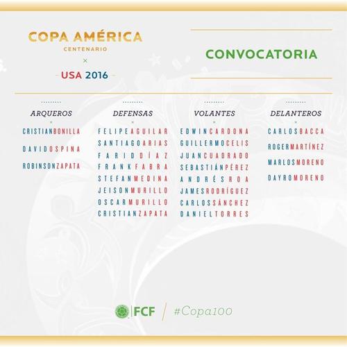 La nómina incluye a varios jugadores jóvenes que hacen parte de un recambio generacional que Pékerman viene trabajando después del mundial de Brasil-2014 como: Edwin Cardona (Monterrey, México), Roger Martínez (Racing, Argentina), Andrés Roa (Cali), Frank Fabra (Boca Juniors, Argentina) y Sebastián Pérez (Nacional).