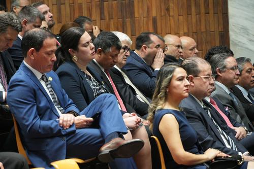 Además, previo a iniciar acudieron el presidente del Congreso, Nery Ramos, el presidente de Guatemala, Bernardo Arévalo; además participó la fiscal general, Consuelo Porras.