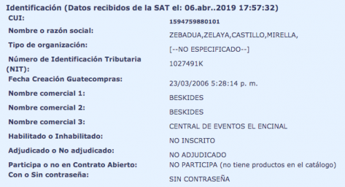 En Guatecompras le aparece a esta empresa que ha ganado contratos con el Estado, pero ninguna vinculada con el ministro Monge. El último contrato fue en 2017, con la SAT, por un valor de Q1,800.