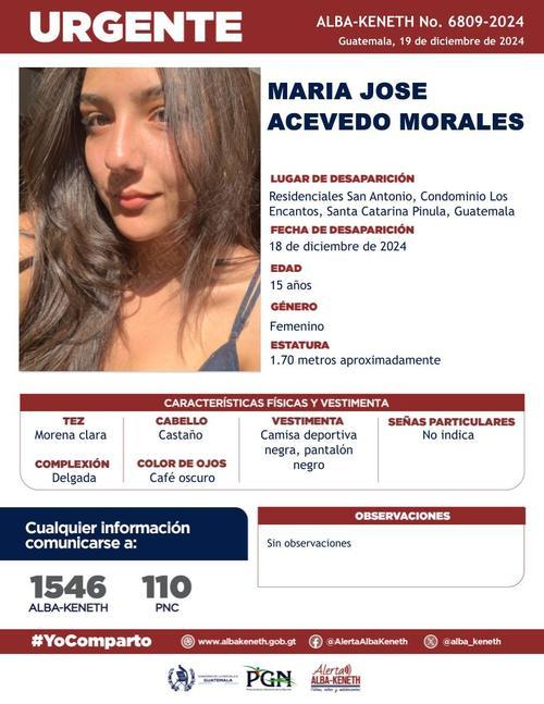 María José, de 15 años estaba reportada como desaparecida desde el 18 de diciembre.