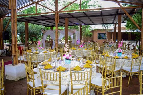 Hay un área techada, que cuenta con una pista en donde aparentemente se realizan eventos para todo tipo de celebración.