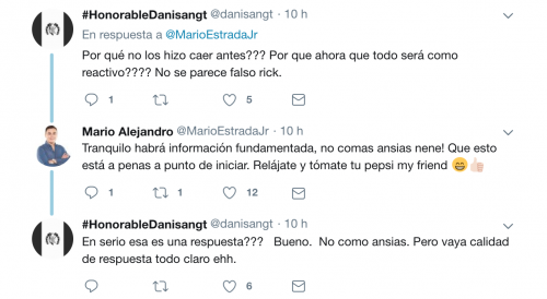 Además, Estrada Ruano justificó en varias de sus respuestas que cuenta con información fundamentada, ante los reclamos de personas que le cuestionaban por qué no las había revelado antes.