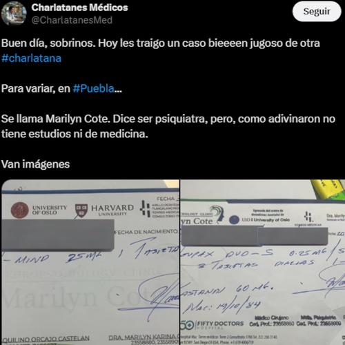 Tras una investigación se determina que Marilyn Cote cuenta con una maestría en Criminalística, un doctorado en Psicología y una licencia en Derecho. Sin embargo, es afirmativo que no cuenta con alguna cédula en Psiquiatría. Por lo tanto, si solo cuenta con doctorado en psicología, no puede emitir recetas específicas.