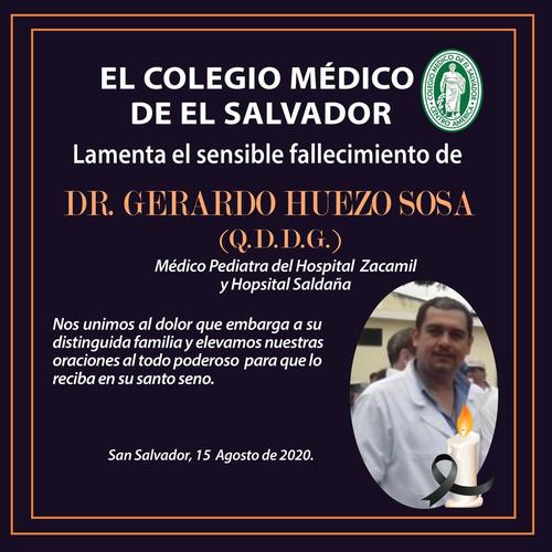 El Colegio Médicos de El Salvador lamentó su deceso.