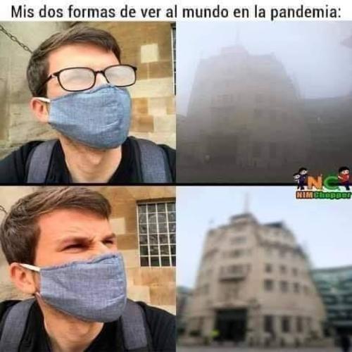 Otros de los memes más populares es el que muestra el drama de la gente que usa gafas y mascarilla, y sus dos únicas formas de ver el mundo.