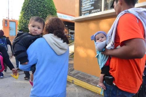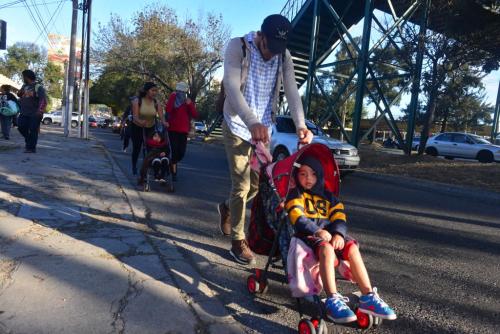 Los niños en brazos o en carruajes es la común de las postales del éxodo de hondureños que partió en una primera caravana el año pasado.