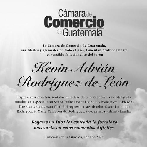 Además, la Cámara de Comercio de Guatemala también se solidarizó con Lester Leopoldo Rodríguez, padre del joven fallecido.