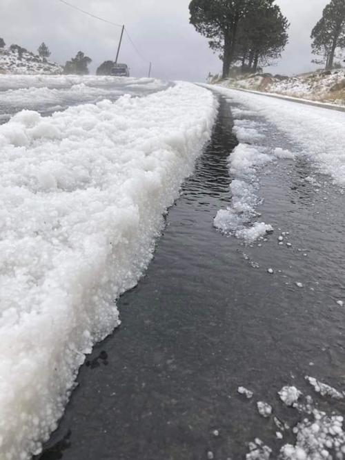¡Ya no podemos avanzar!, detalló, mientras graba con su teléfono la gran cantidad de granizo que cae a sus alrededores. pic.twitter.com/GgfyrKoZSv