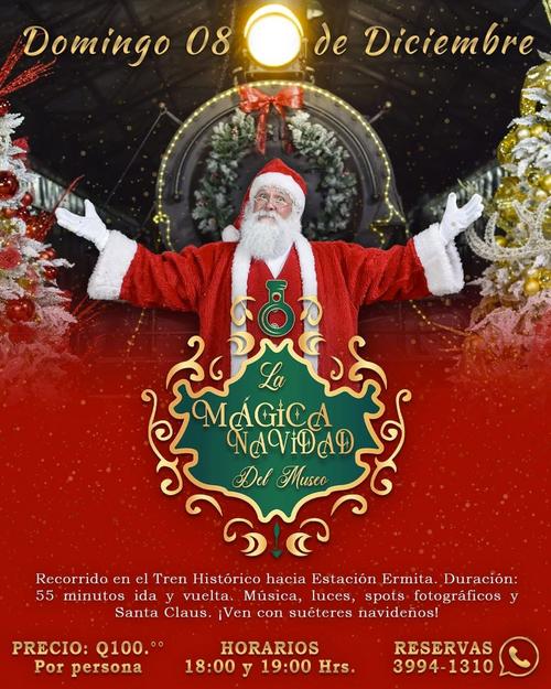 ¡Lleva tu mejor suéter navideño! y ve acompañado con tu familia y amigos en este único recorrido en el Tren Histórico hacia la Estación Ermita, tendrá una duración de 55 minutos ida y vuelta.