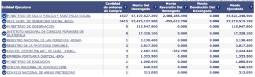 Desde el 21 de agosto hasta la fecha, el sitio Guatecompras, registra un monto total ejecutado de 71 millones 985 mil 877 quetzales.