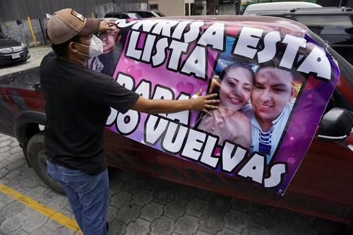 Apostado en la calle del hotel capitalino, acondicionado para atender enfermos de Covid-19, Miguel Ángel Taque, de 26 años, se valió de una manta con la frase "Mi sonrisa está lista para cuando vuelvas", para saludar a su novia Yoselin Solórzano, observó el fotógrafo de Agencia Francesa de Prensa (AFP), Johan Ordóñez.