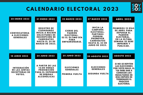 A partir del 21 de enero de 2023, los partidos político y comités cívicos empezaron a presentar la papelería de sus candidatos para solicitar la inscripción ante el Registro de Ciudadanos.
