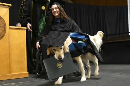 Griffin, un perro que vive para auxiliar a su dueña en silla de ruedas, y que siempre la acompañó a todas sus clases en la carrera, recibirá un diploma de maestría por la Universidad de Clarkson.