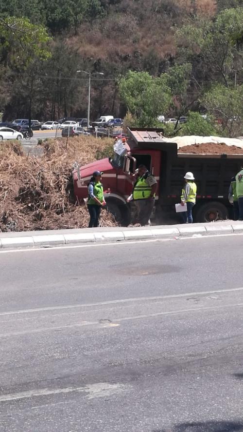 #UltimoMinutoGT | Camión cargado de tierra se quedó sin frenos, bajando bulevar Austriaco a Crucero Cuatro Caminos zona 16.