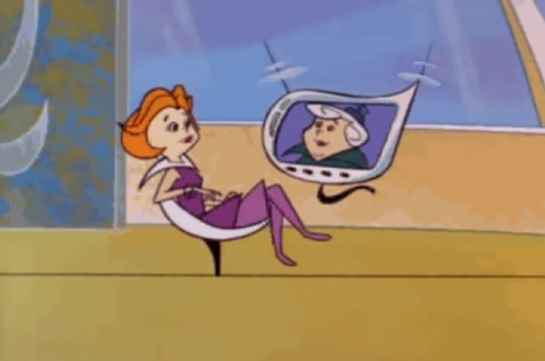 Ultra Sónico (Jane Jetson), esposa de Súper Sónico (George Jetson), conversaba con amigas a través de una pantalla. Aplicaciones como FaceTime, Hangouts, WhatsApp, Messenger, Zoom y Microsoft Teams permiten ahora hacerlo.
