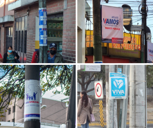 No está permitido el uso de postes para proselitismo, pese a que el Tribunal Supremo Electoral ya advirtió a partidos políticos para que retiren los materiales, varios siguen siendo visibles.
