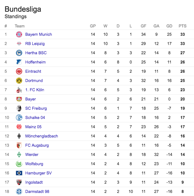 Actualmente comparten la punta de la tabla con el Bayern, aunque oficialmente están en segundo puesto por la diferencia de goles.