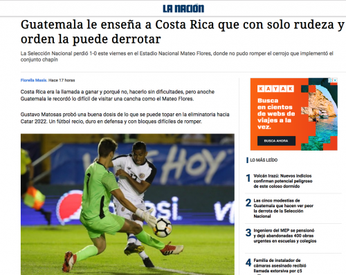 "Guatemala le enseña a Costa Rica que con solo rudeza y orden la puede derrotar", tituló La Nación.